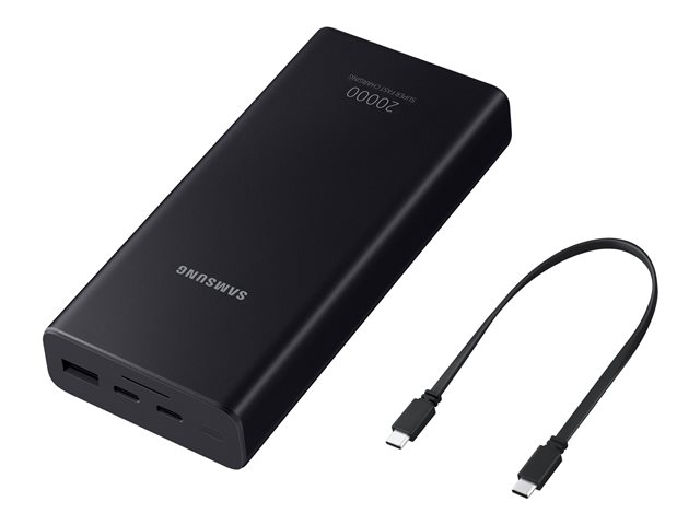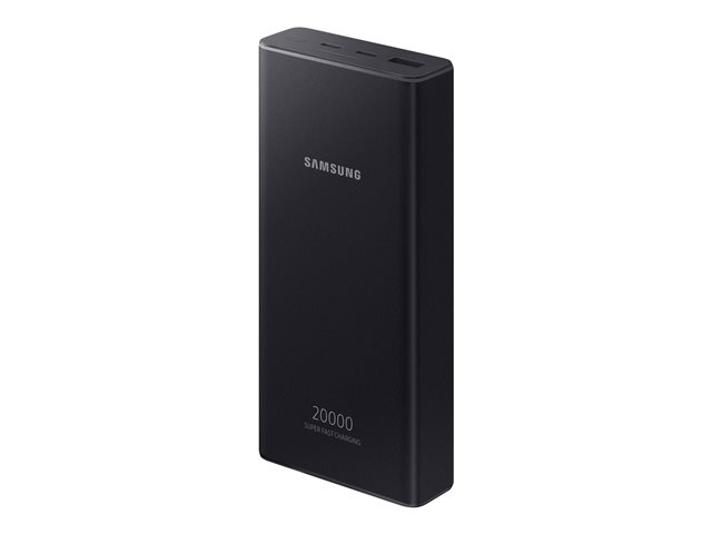 Description du produit Samsung Battery Pack EB-P5300 banque d'alimentation - USB, 24 pin USB-C - 25 Watt Type de Produit Banque d'alimentation Dimensions (LxPxH) 6.92 cm x 2.543 cm x 14.31 cm Poids 392 g Couleur Gris foncé Type de prise Total 2: USB, 24 pin USB-C - sur le câble : USB-C Tension requise 5 / 9 / 12 / 15 / 20 V Tension fournie 5 / 9 / 12 / 15 / 20 V Courant électrique max. 3 A Technologie de charge rapide Power Delivery 3.0, Qualcomm Quick Charge 2.0, Samsung Adaptive Fast Charging, Samsung Super Fast Charge Batterie 20000 mAh Alimentation fournie 25 Watt Câbles Câble USB-C - 30 cm -
