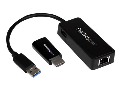 Conçu pour le modèle Pavilion Chromebook 14 HP équipé de ports HDMI et USB 3.0, ce kit contient un adaptateur HDMI vers VGA permettant de brancher un vidéoprojecteur ou un écran VGA externe par la sortie HDMI. Un adaptateur USB 3.0 vers Gigabit Ethernet est également inclus. Il permet la prise en charge d'un réseau filaire et offre l'avantage supplémentaire d'un port USB Pass-Through afin de garder votre port USB 3.0 disponible pour d'autres périphériques.
