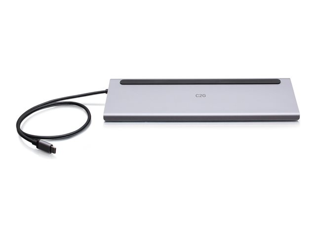 C2G USB-C 10-in-1 Triple Display Docking Station with HDMI, DisplayPort, VGA, Ethernet, USB, SD Card Reader, 3.5mm Audio and Power Delivery up to 100W