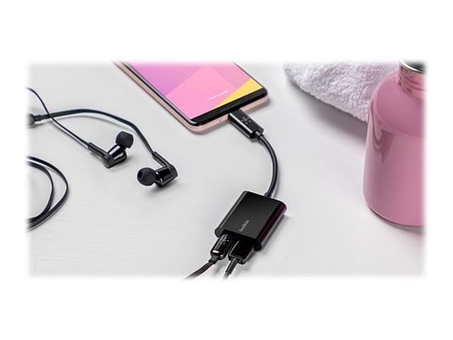L'Adaptateur USB-C Belkin CONNECT Audio + Charge, F7U081, est un adaptateur audio et de charge USB-C à double port pour votre téléphone, tablette ou ordinateur portable compatible USB-C. Le Belkin F7U081 supporte une puissance de transfert USB-PD allant jusqu'à 60W pour vos appareils gourmands en énergie. Petit et portable, le Belkin F7U081 peut être utilisé partout, vous permettant d'écouter de l'audio tout en chargeant votre appareil par un seul port USB-C.