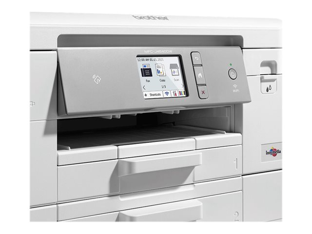 La MFC-J4540DW est une imprimante jet d'encre multifonction design et de qualité professionnelle, offrant des fonctionnalités d'impression, de copie, de numérisation et de télécopie. Imprimez où que vous soyez, à votre domicile ou depuis votre smartphone grâce à la connectivité sans fil. Par ailleurs, la compatibilité NFC vous permet d'imprimer rapidement et facilement depuis votre smartphone ou votre tablette.