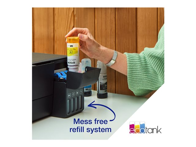 Économisez jusqu'à 90 % sur le coût de l'encre avec les imprimantes multifonction Epson EcoTank sans cartouches. Fournie avec des bouteilles d'encre haute capacité, ses réservoirs d'encre intégrés sont faciles à remplir grâce aux bouteilles d'encre spécialement conçues. Sans aucune cartouche à remplacer et dotée de fonctionnalités de connectivité flexibles, cette imprimante multifonction est idéale pour les personnes qui recherchent des impressions de haute qualité et un coût par page très bas.