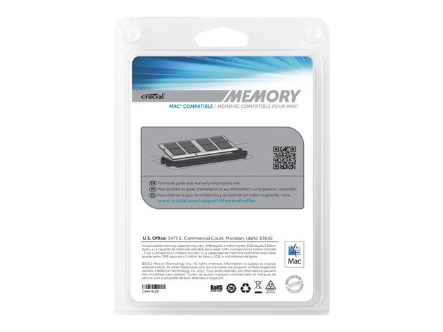 Description du produit Crucial - DDR3 - kit - 8 Go: 2 x 4 Go - SO DIMM 204 broches - 1066 MHz / PC3-8500 - mémoire sans tampon Type de Produit Kit mémoire Capacité 8 Go: 2 x 4 Go Type de mémoire DDR3 SDRAM - SO DIMM 204 broches Type de mise à niveau Spécifique au système Vérification de l'Intégrité des Données Non ECC Vitesse 1066 MHz (PC3-8500) Temps de latence CL7 Caractéristiques Mémoire sans tampon Tension 1.5 V Garantie du fabricant Garantie limitée à vie Conçu pour Apple iMac (Début 2009, Fin 2009, Mi-2009); Mac mini (Début 2009, Fin 2009, Mi-2010); MacBook (Fin 2008, Fin 2009, Mi-2010); MacBook Pro (Début 2009, Mi-2009, Mi-2010) -