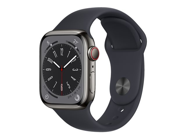 41 mm - acier inoxydable graphite - montre intelligente avec bande sport - fluoroélastomère - minuit - taille du bracelet : Normal - 32 Go - Wi-Fi, LTE, Bluetooth, UWB - 4G - 42.3 g