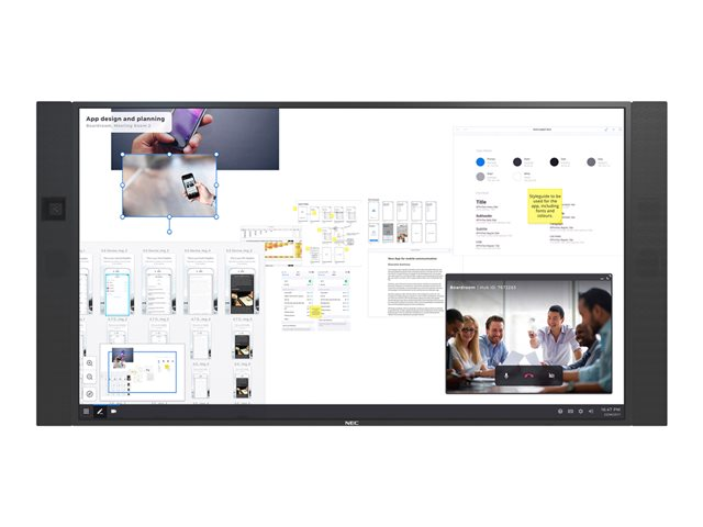 InfinityBoard s'accompagne d'un affichage tactile InGlass ultra-haute définition et de deux stylos passifs. Son design inclut aussi une caméra de vidéoconférence Huddly ultra-grand-angle et des haut-parleurs de conférence inédits. Alliant chat vidéo, présentation sans fil et collaborations de contenu, InfinityBoard de NEC facilite une coopération intelligente au cœur des espaces de réunion modernes.