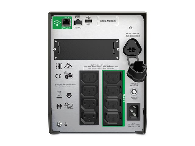 Onduleur - CA 220/230/240 V - 1000 Watt - 1500 VA - RS-232, USB - connecteurs de sortie : 8 - noir - avec APC SmartConnect