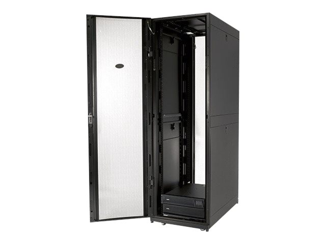 Armoires informatiques riches en fonctionnalités optimisées pour l'architecture en rangées InfraStruxure, la gestion des câbles, la distribution d'alimentation ainsi qu'une circulation d'air optimale.