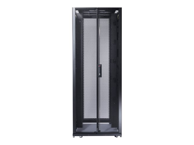 Armoires informatiques riches en fonctionnalités optimisées pour l'architecture en rangées InfraStruxure, la gestion des câbles, la distribution d'alimentation ainsi qu'une circulation d'air optimale.