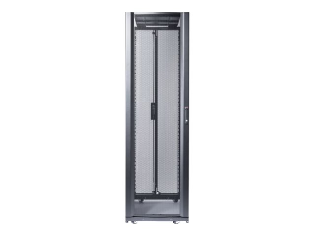 Armoires informatiques riches en fonctionnalités optimisées pour l'architecture en rangées InfraStruxure, la gestion des câbles, la distribution d'alimentation ainsi qu'une circulation d'air optimale.