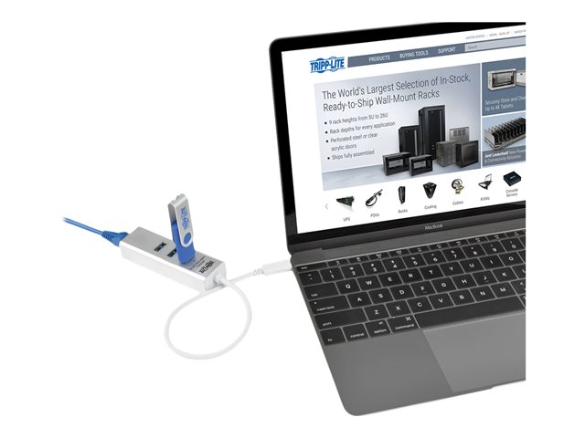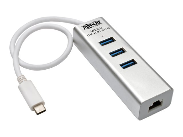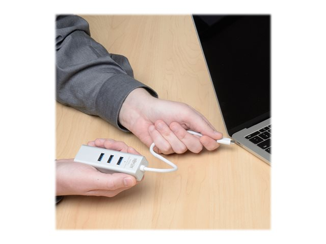 Tripp Lite 3-Port USB 3.1 Gen 1 USB-C Portable Hub/Adapter, 3 USB-A Ports and Gigabit Ethernet Port, Thunderbolt 3 Compatible