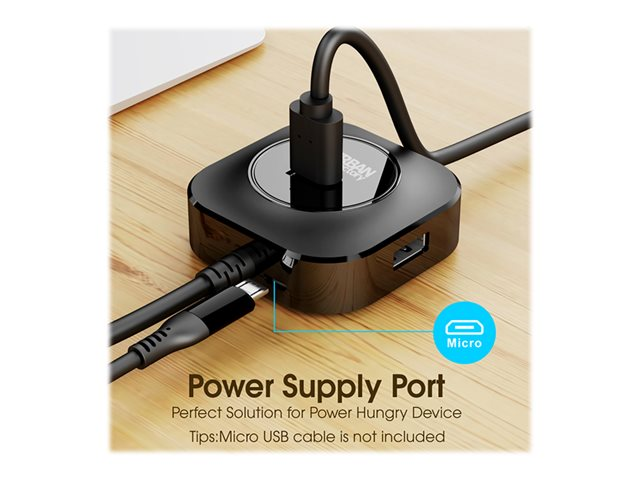 Ce hub USB 4 ports est un réplicateur de port haute vitesse avec un taux de transfert allant jusqu'à 480Mbps. Le hub est ultra compact et transportable facilement.