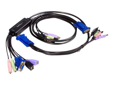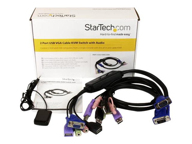 Le commutateur KVM SV215MICUSBA à câble 2 ports VGA USB avec audio constitue une solution de haute résolution (jusqu'à 2048x1536) pour contrôler deux ordinateurs de bureau à partir d'un seul ensemble de périphériques KVM (clavier, vidéo, souris).
