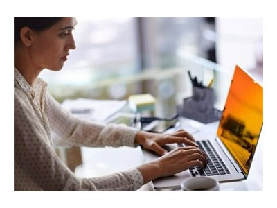 Les filtres de confidentialité 3M Or offre une clarté supérieure d'environ 20 % par rapport aux filtres de confidentialité 3M noirs standards. Les pirates visuels se retrouvent confrontés à un écran totalement noir ou doré. Les vues latérales sont bloquées au delà d'un angle de 30° de chaque côté de l'écran. La finition dorée et brillante est conçue pour réstituer la clarté et la luminosité de l'écran. Ce filtre est reversible : un côté or et un côté noir brillant.