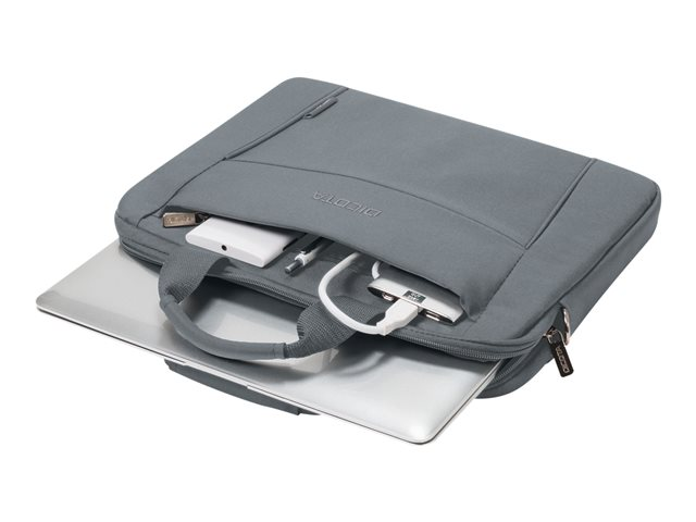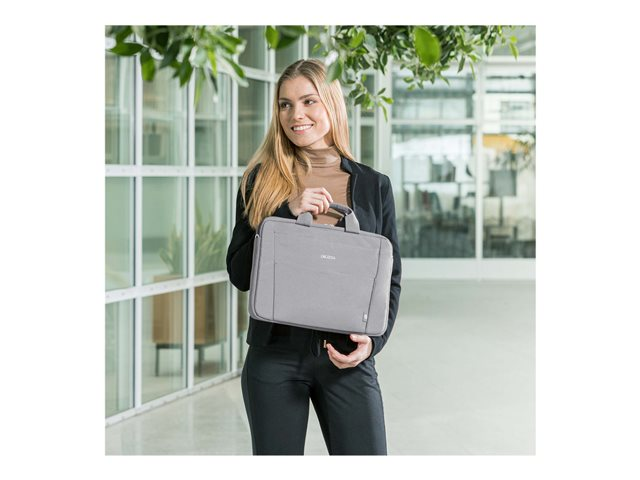 L'Eco Slim Case BASE est la solution de transport légère et mince pour votre ordinateur portable. Les appareils sont parfaitement protégés dans le compartiment rembourré pour ordinateur portable. Transportez votre sac confortablement grâce à la poignée rembourrée ou utilisez la bretelle réglable. Un compartiment à documents utile se trouve à l'arrière, où les documents peuvent être facilement rangés. Dans le compartiment avant pratique, vous trouverez suffisamment de place pour le smartphone ou d'autres accessoires mobiles tels que des câbles, des stylos ou des chargeurs qui doivent toujours être à portée de main. Cela fait de l'Eco Slim Case BASE le sac parfait pour tous ceux qui se déplacent souvent et qui souhaitent soutenir la réutilisation raisonnable des bouteilles en PET grâce à une solution de transport écologique.