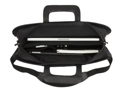 Cette sacoche élégante peut se porter de deux façons. Levez les poignées rétractables pour avoir un attaché-case classique ou attachez la bandoulière matelassée revêtue de néoprène et dotée de fermoirs rotatifs pour un transport confortable et sécurisé. Peu importe votre façon de la porter, la sacoche Executive de Targus a un look professionnel.