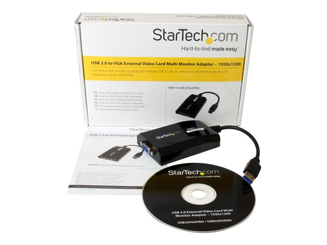 StarTech.com Adaptateur vidéo multi-écrans USB 3.0 vers VGA pour Mac et PC - Carte graphique externe - 1920x1200 / 1080p - Adaptateur USB / VGA - USB type A (M) pour HD-15 (VGA) (F) - USB 3.0 - 25.5 m - support 1920 x 1200 (WUXGA) - noir - pour P/N: MXT101MM USB32VGAPRO