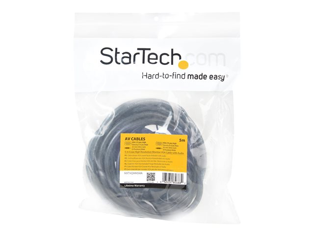 StarTech.com Câble vidéo coaxial pour écran VGA haute résolution 5 m avec audio HD15 M/M - Câble VGA - HD-15 (VGA), mini-phone stereo 3.5 mm (M) pour HD-15 (VGA), mini-phone stereo 3.5 mm (M) - 5 m - moulé, vis moletées - noir