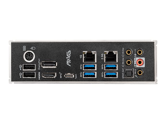 | Interfaces | 1 x LAN (2.5Gigabit Ethernet) 1 x LAN (Gigabit Ethernet) 4 x USB 3.2 Gen 1 2 x USB 2.0 1 x clavier / souris PS/2 1 x USB-C Gen2x2 1 x HDMI 1 x sortie de ligne audio - mini-jack 1 x microphone - mini-jack 1 x sortie de ligne audio (centre/caisson de basses) - mini-jack 1 x sortie de ligne audio (arrière) - mini-jack 1 x entrée de ligne audio - mini-jack 1 x TOSLINK 1 x DisplayPort |