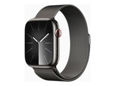 Apple Watch Series 9 (GPS + Cellular) - 45 mm - acier inoxydable graphite - montre intelligente avec boucle milanaise - 64 Go - Wi-Fi, LTE, UWB, Bluetooth - 4G - 51.5 g MRMX3QF/A