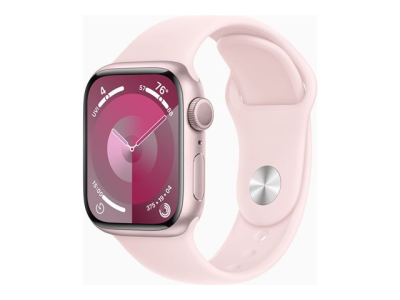 Apple Watch Series 9 (GPS) - 41 mm - aluminium rose - montre intelligente avec bande sport - fluoroélastomère - rose pâle - taille du bracelet : M/L - 64 Go - Wi-Fi, UWB, Bluetooth - 31.9 g