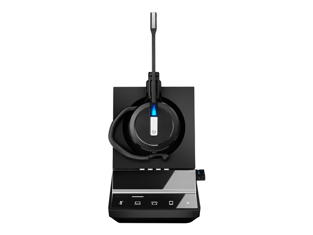 Micro-casque monaural sans fil DECT triple connectivité, doté d'un triple style de maintien. Se connecte à un PC/softphone, un téléphone fixe et un mobile pour un maximum de flexibilité. Son très large bande pour une qualité audio époustouflante.