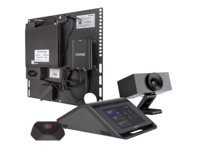 Le système de conférence de table UC-M70-T Crestron Flex offre une solution de vidéoconférence pour les grandes salles, à utiliser avec le logiciel Microsoft Teams Rooms. Il prend en charge un ou deux écrans vidéo (non inclus) et comprend un appareil de conférence de table Crestron Flex, une caméra d'entreprise, un support UC, un microphone, un bloc d'alimentation et des câbles.