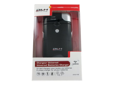 DLH DY-CU1192 - Chargeur de batteries + adaptateur secteur + adaptateur d'alimentation de voiture - 2 x charge de batteries - 700 mA
